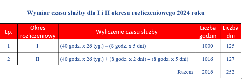 Wymiar czasu służby dla I oraz II okresu rozliczeniowego 2024 roku